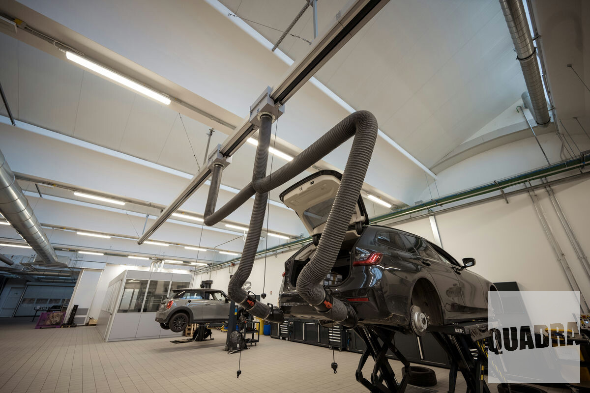 • Impianto scorrevole Touchless per l’aspirazione dei gas di scarico